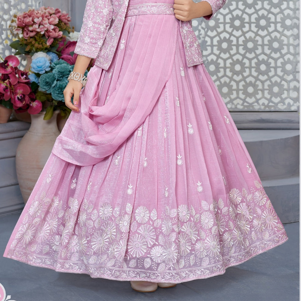 Blush Pink Embroidered Gown with Jacket – Childhood Couture Elegance