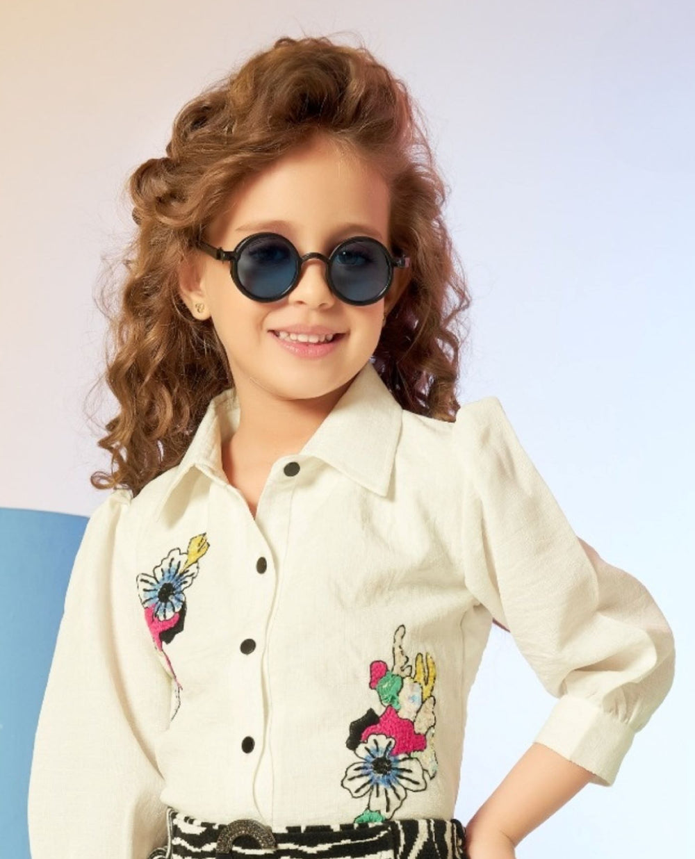 Unleash your little one’s inner fashionista with this ultra-stylish co-ord set by Snowberry Girl. The embroidered cream shirt paired with a chic zebra-print skirt creates a bold statement look perfect for birthdays, fashion shoots, and parties. Trendy, sassy, and oh-so-confident!