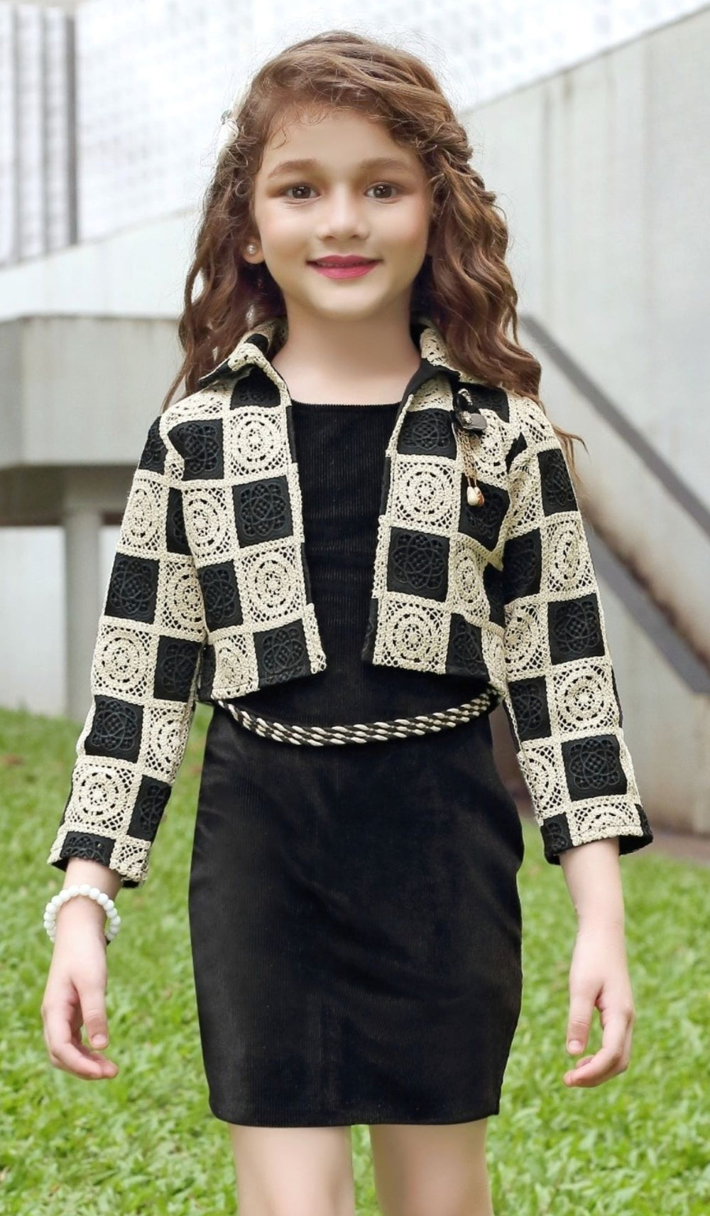 Upgrade your girl's wardrobe with this Elegant Black 2-Piece Co-Ord Set featuring a chic embroidered jacket and a smart black dress with belt detailing. Perfect for parties, formal outings, or festive events, this set offers a modern, trendy look while keeping it stylishly comfortable.