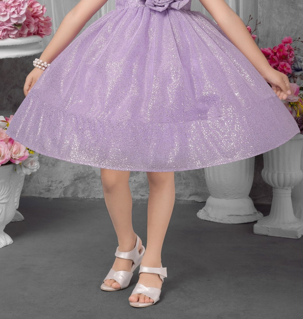 Let your little one glow in grace with our Mehar Lavender Party Frock, designed to add shimmer and sparkle to every special celebration. This elegant frock features a glittery lavender net overlay, stylish short sleeves, and stunning 3D floral appliqué on the bodice for a fresh, fairy-tale look.